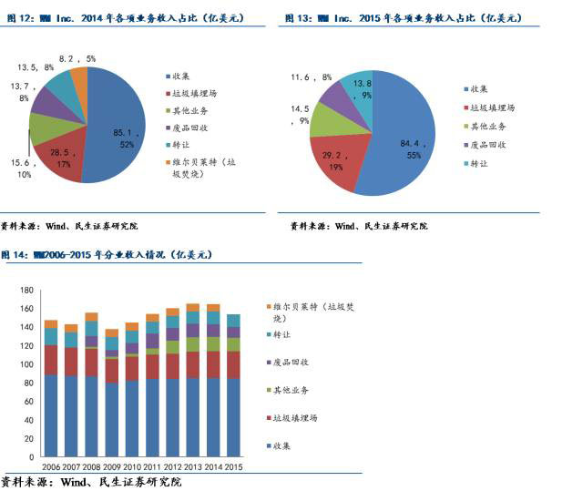 據(jù)公司2015年年報(bào)披露,于法國當(dāng)?shù)?,公司通過垃圾收集、運(yùn)輸以及處理所簽署的訂單合同預(yù)計(jì)累計(jì)收益達(dá)到了1.29億美元,在歐洲其他國家簽訂相關(guān)合同預(yù)計(jì)累計(jì)收益可達(dá)9.83億美元。
